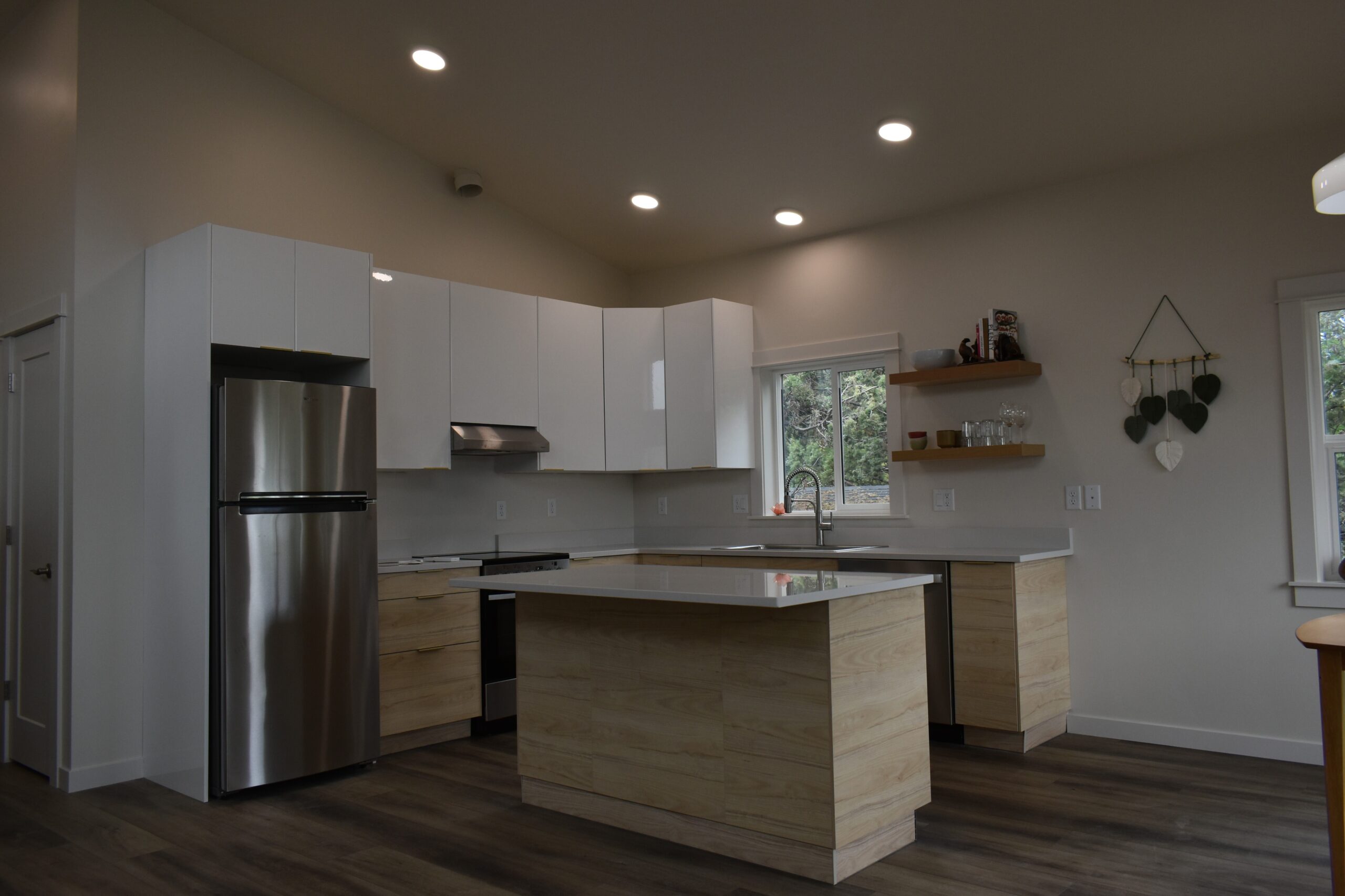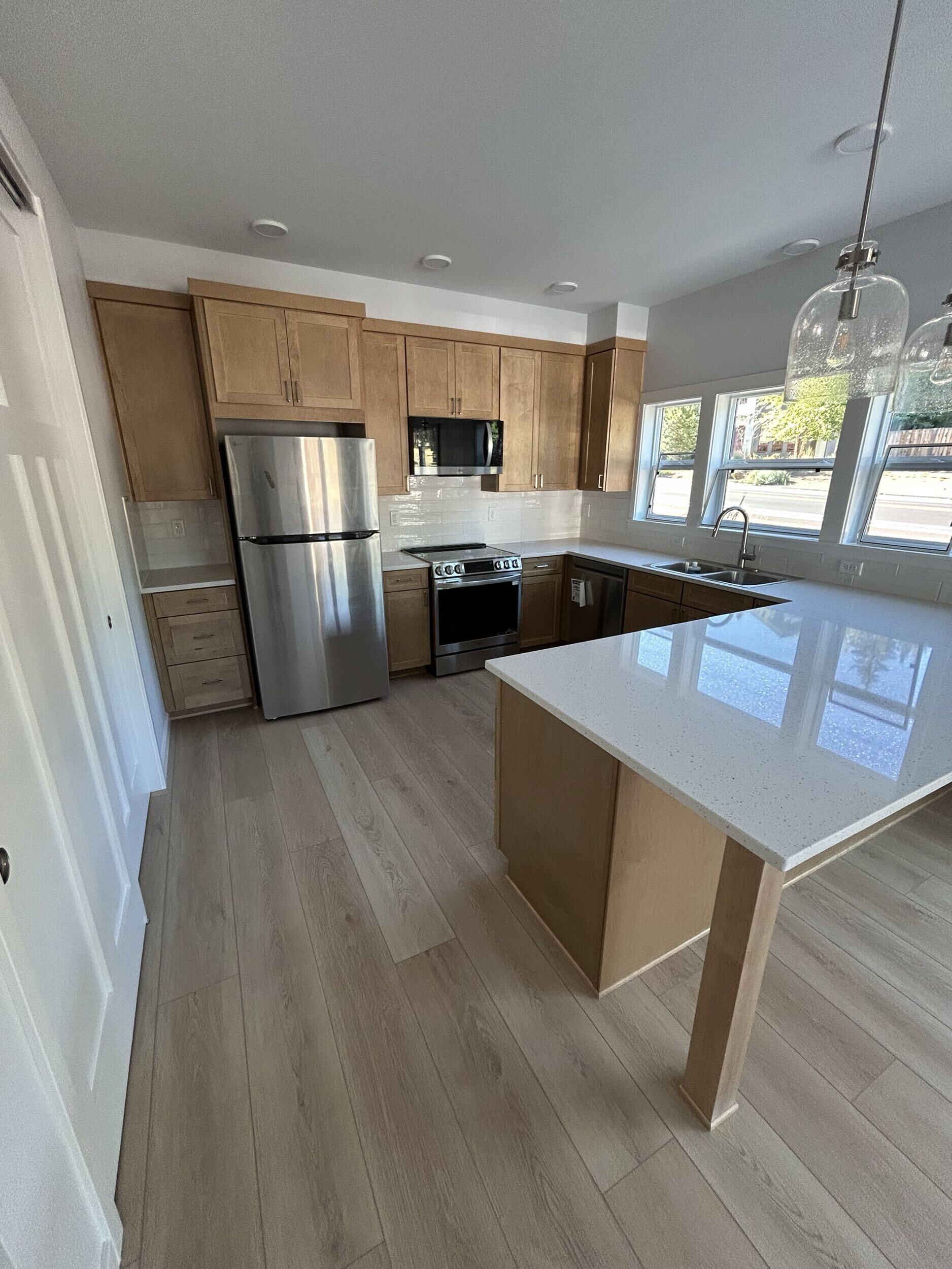 The Fall River’s studio layout is perfect for a guest suite, in-law unit, or even a home office with extra square footage. This ADU maximizes functionality while maintaining a modern aesthetic. This 645 sq. ft. unit boasts high ceilings and an open living concept, fostering a light and airy feel. Large windows invite natural light and stunning Central Oregon views, making it a comfortable and inviting space.