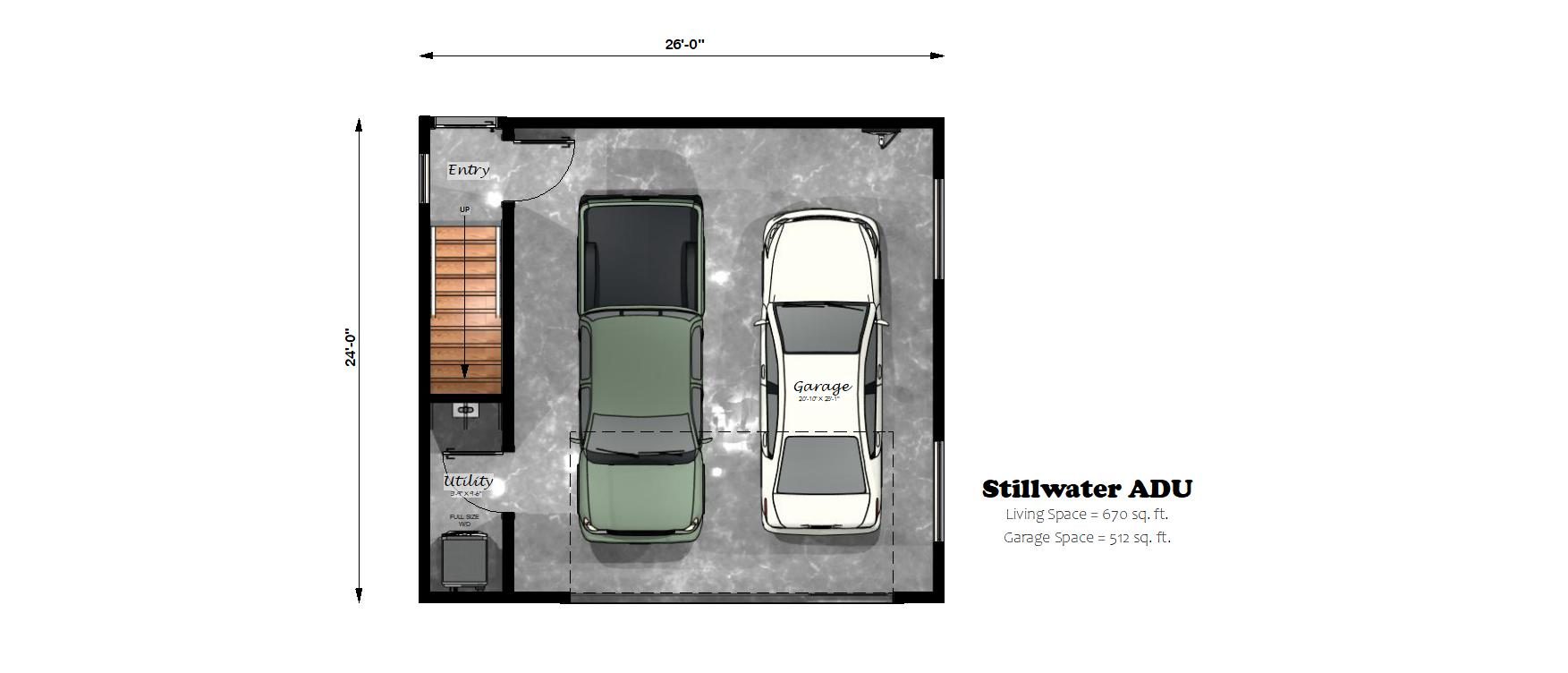 Need that perfect blend of additional living space and a functional garage? Look no further than the smartly designed unit from BuildADU. This 670 sq. ft. ADU boasts a comfortable 1 bedroom and 1 bathroom layout, ideal for guests, a home office, or rental income. Plus, the massive 512 sq. ft. attached garage provides ample storage for vehicles, equipment, or even a workshop. High ceilings throughout the unit add to the feeling of spaciousness and light.